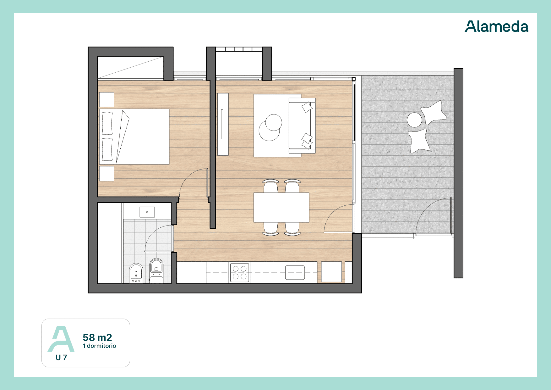 Alameda esta situado en Pichincha, barrio emblemático de la ciudad de Rosario, una zona en donde conviven edificios nuevos de baja altura y casas.