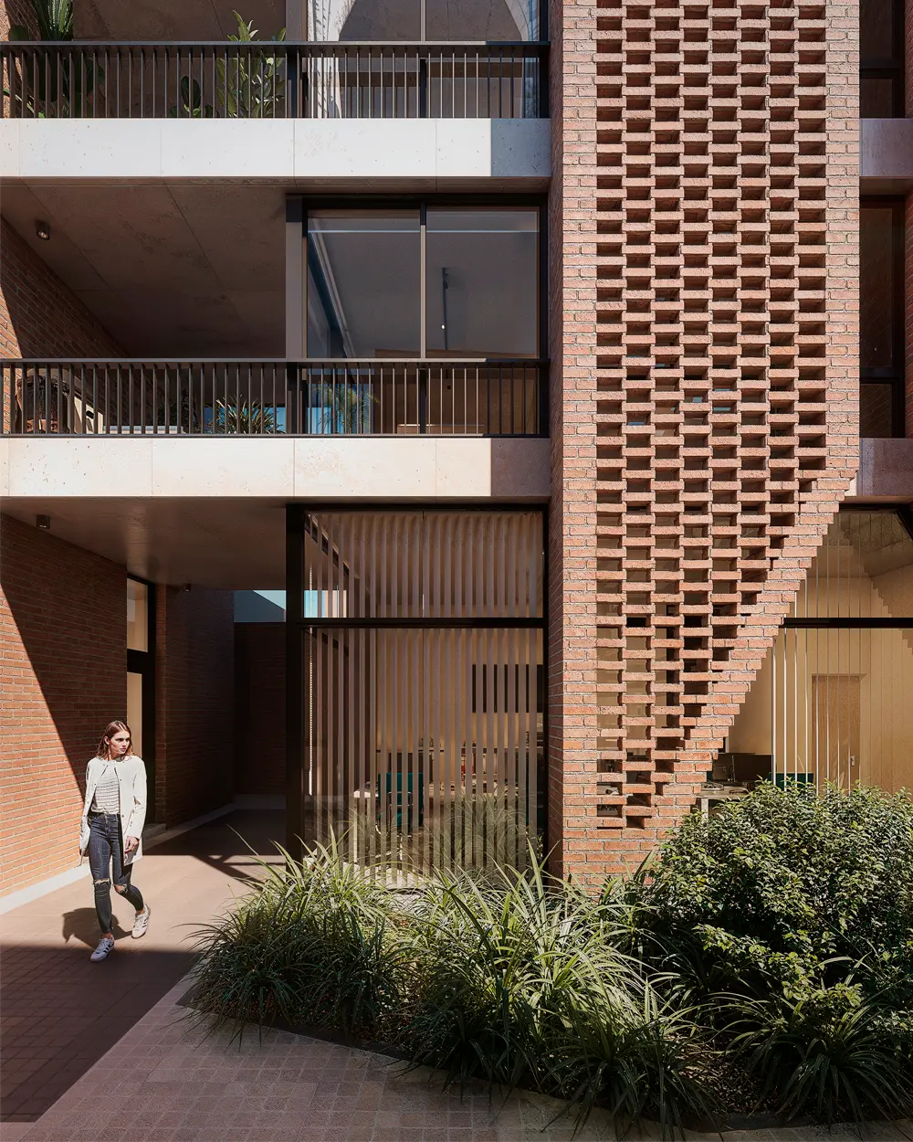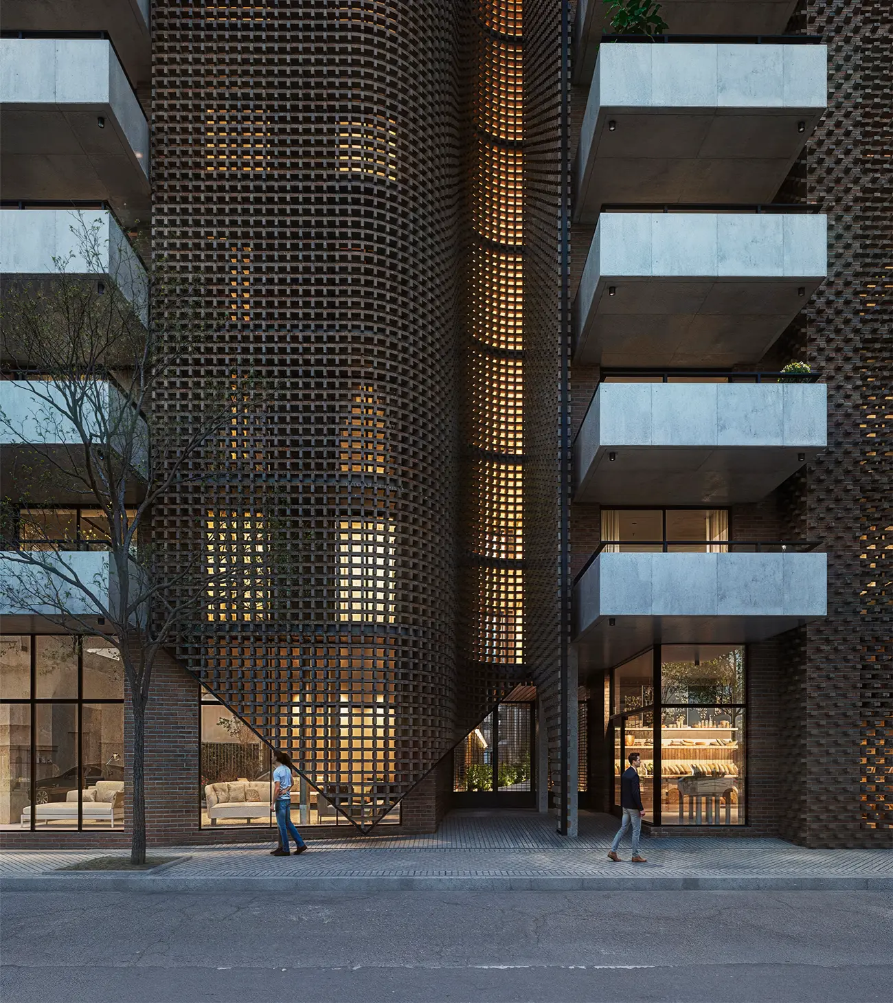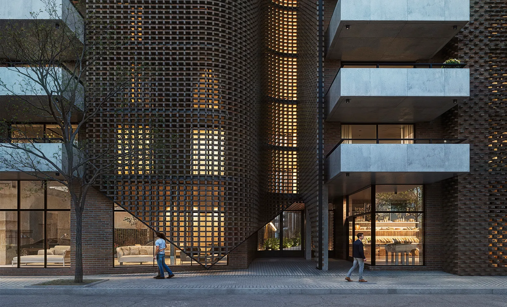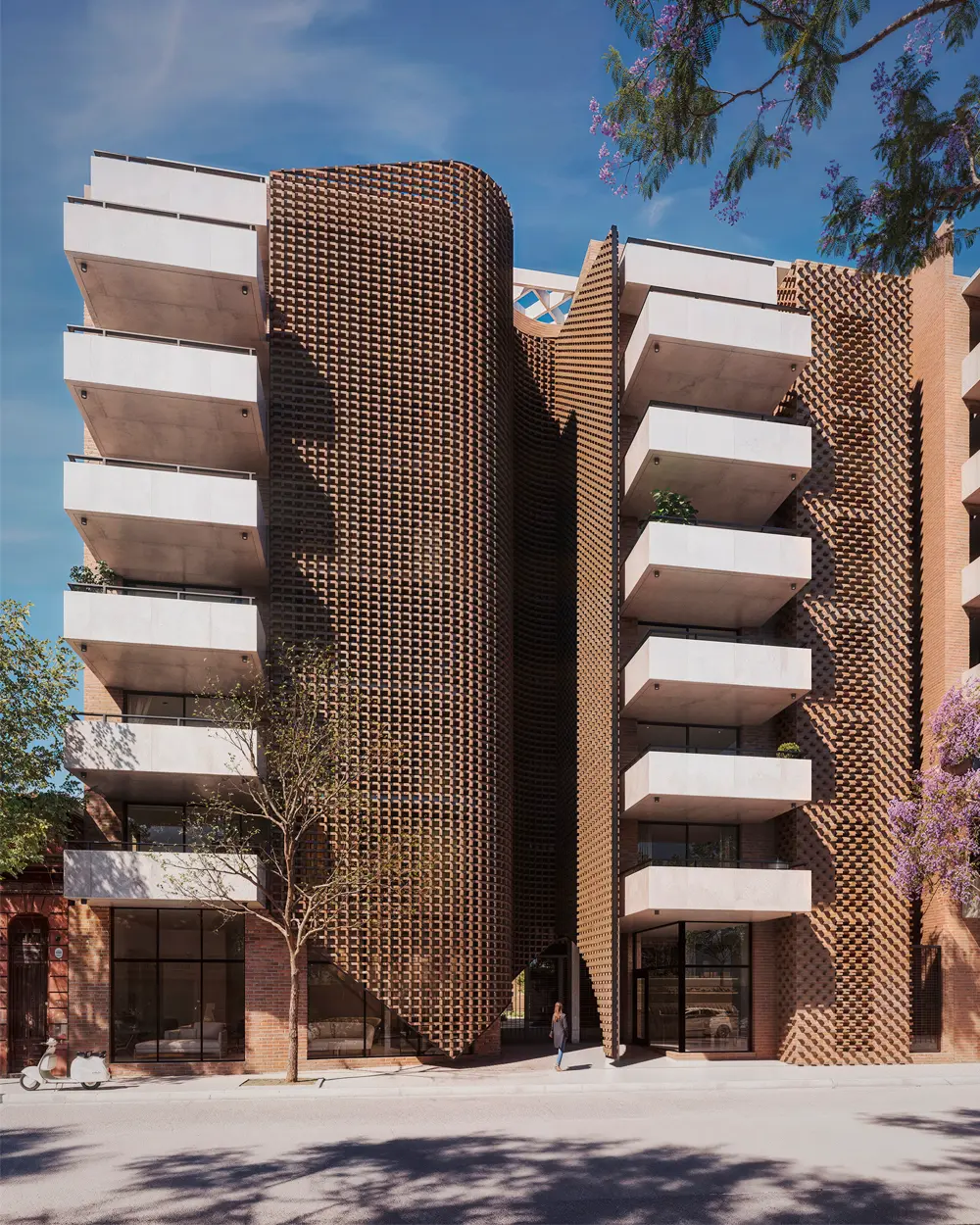 Alameda cautiva desde su fachada de hormigón y una trama de ladrillos que se entrelazan dando una calidez única