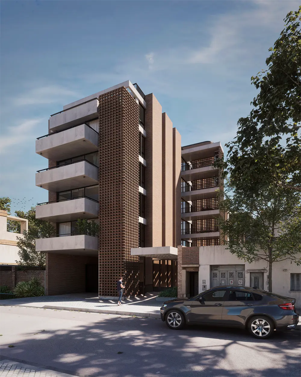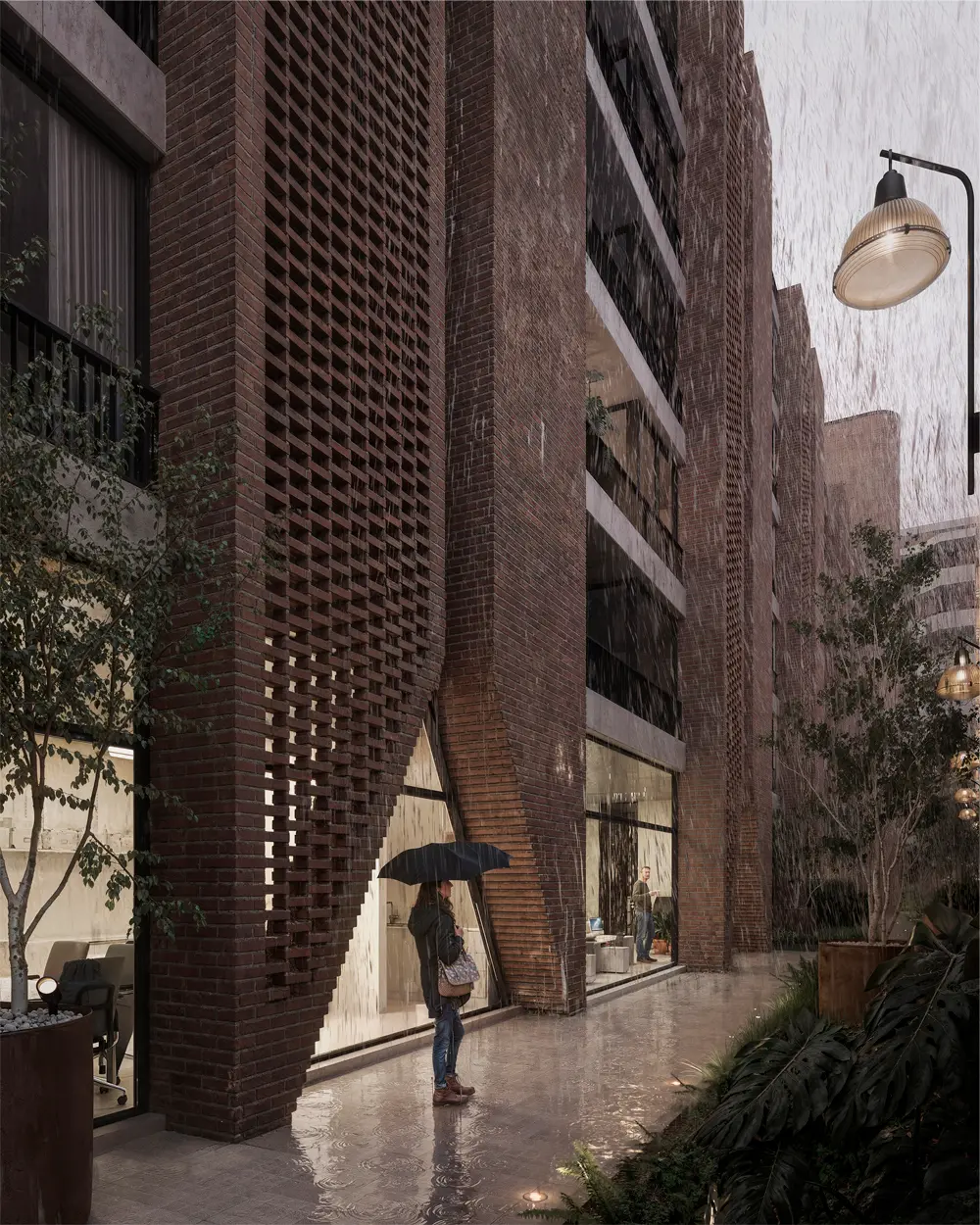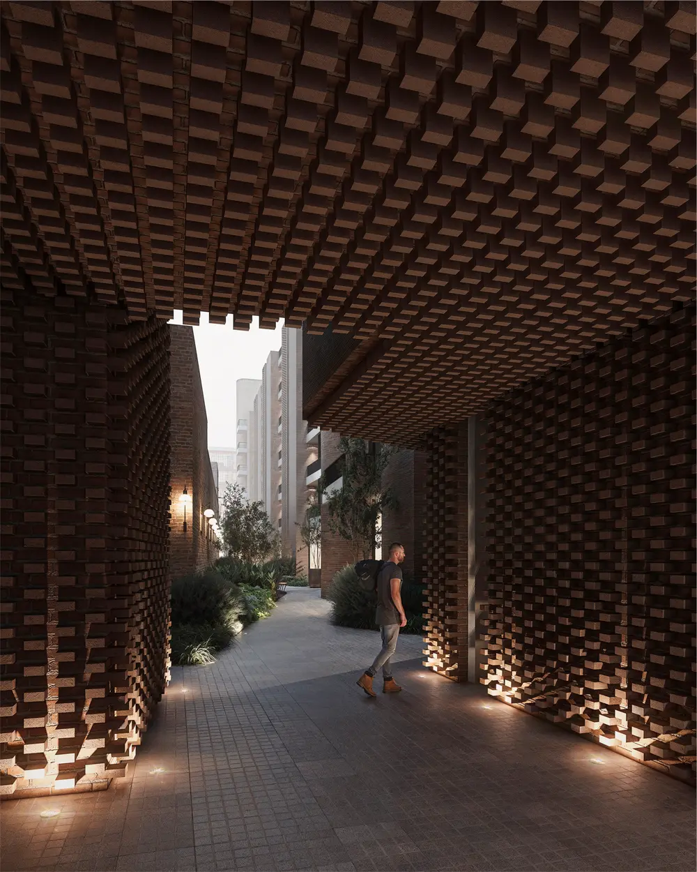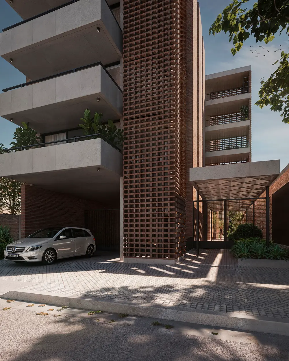Alameda cautiva desde su fachada de hormigón y una trama de ladrillos que se entrelazan dando una calidez única