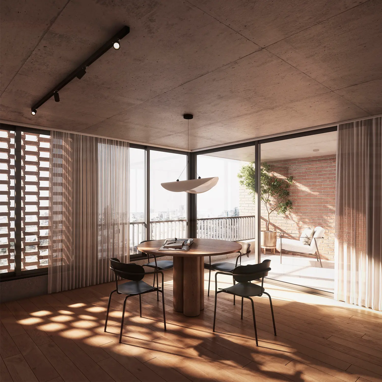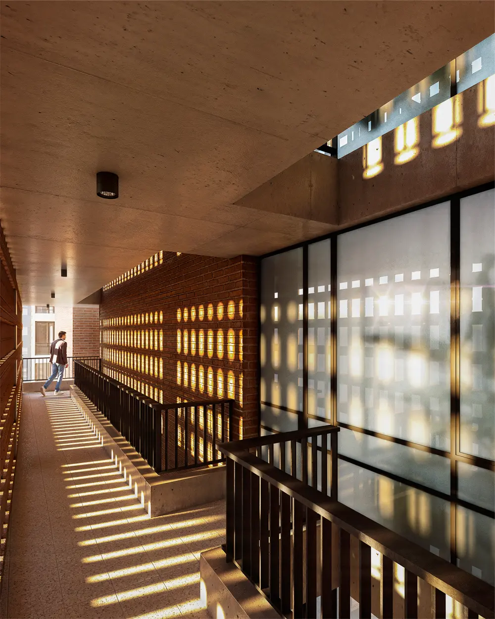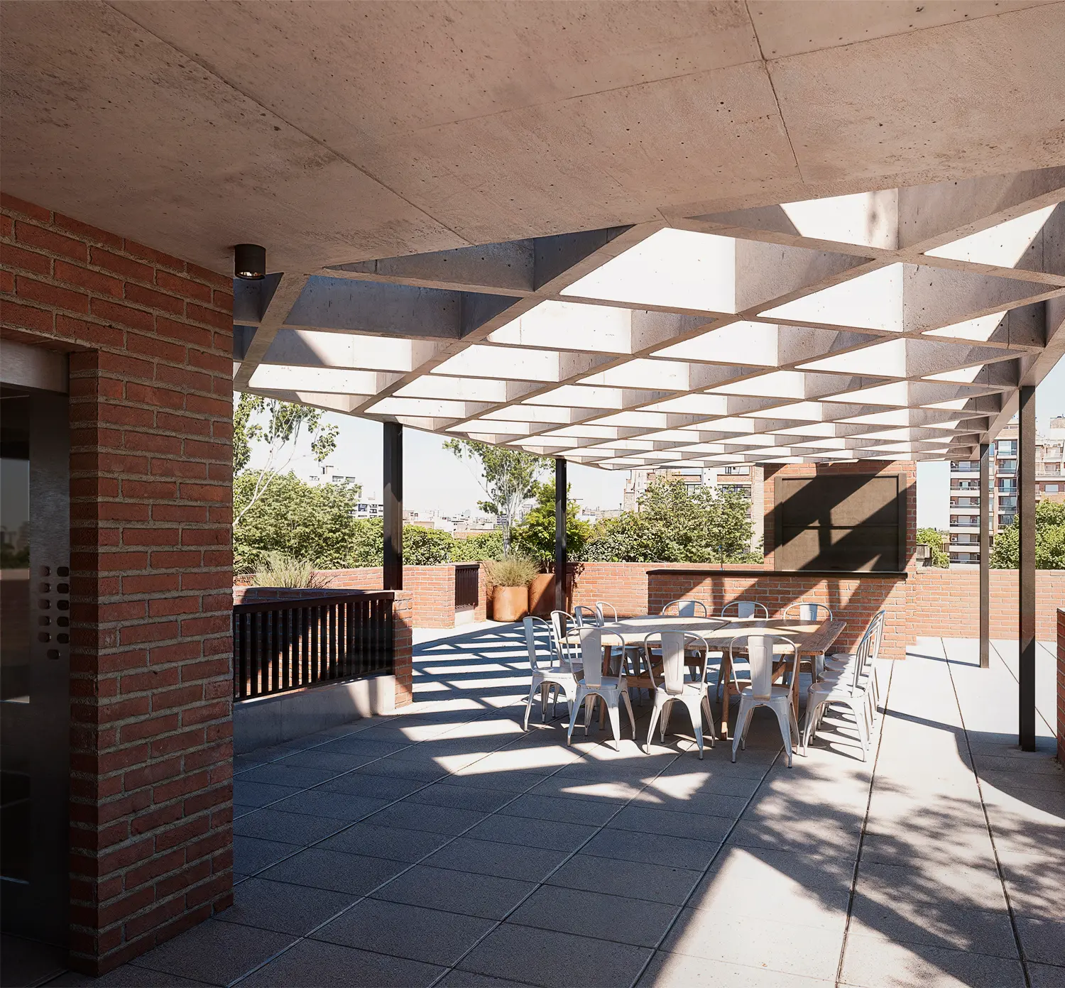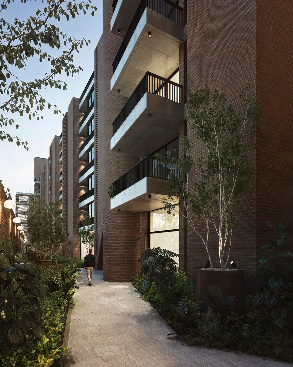 Alameda cautiva desde su fachada de hormigón y una trama de ladrillos que se entrelazan dando una calidez única