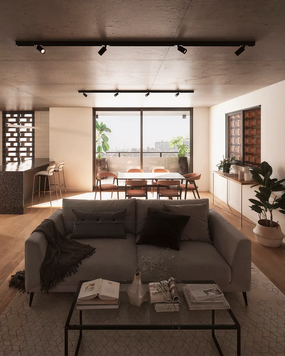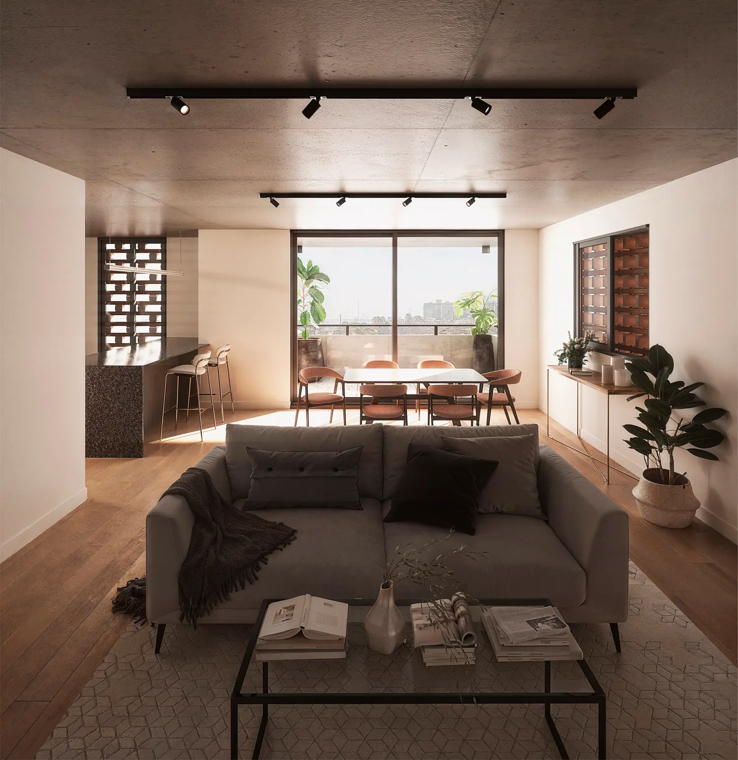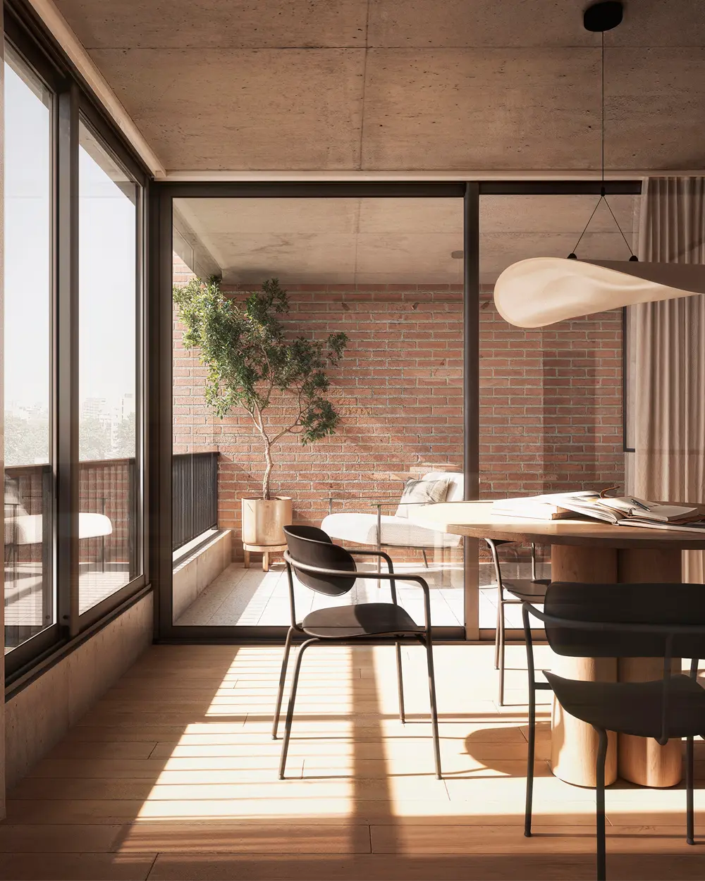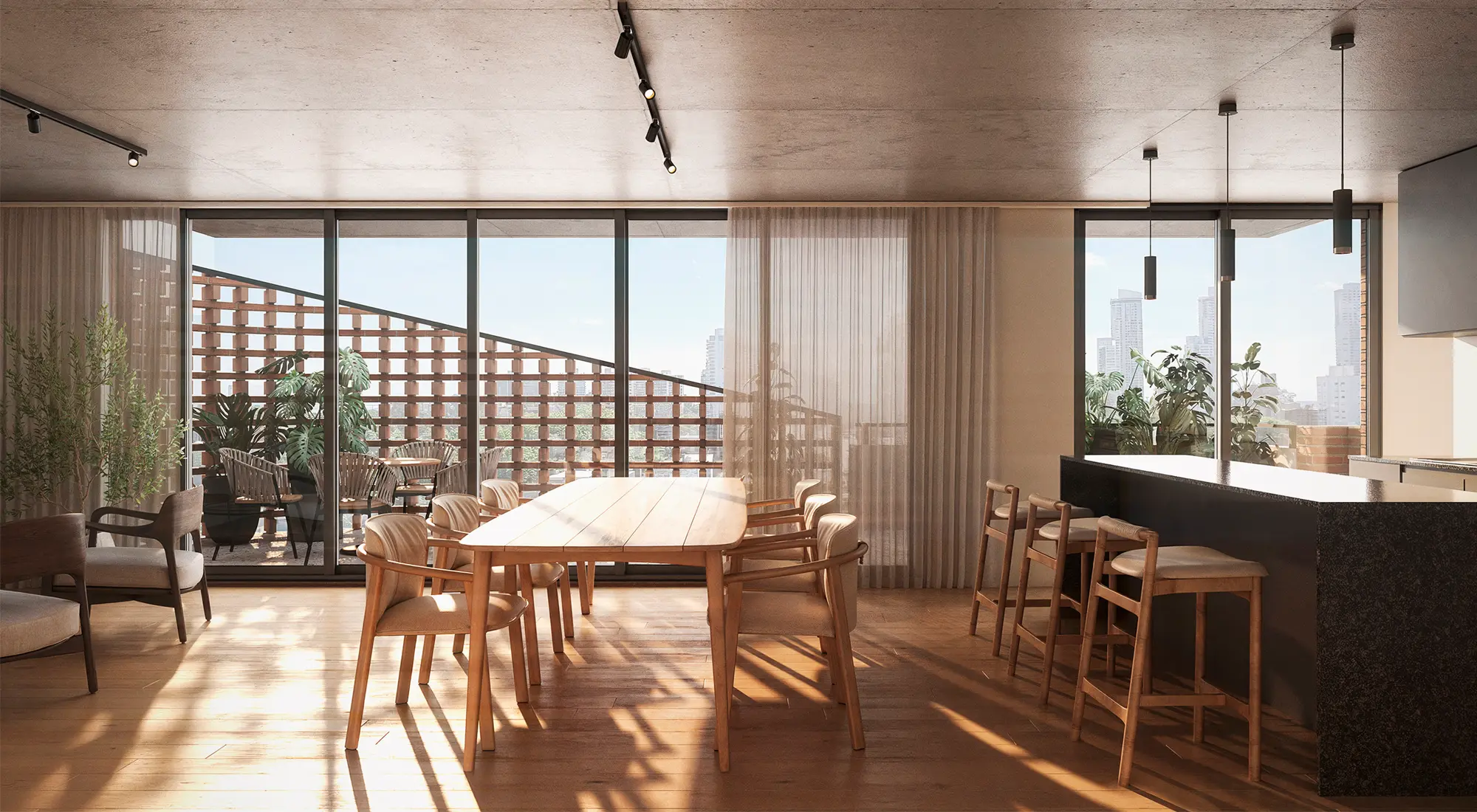 Esta característica transforma al proyecto en un edificio diferente, diseñado para aprovechar la tranquilidad del centro de manzana y el verde proyectado de su patio central, trasladando esa serenidad al interior de cada vivienda.